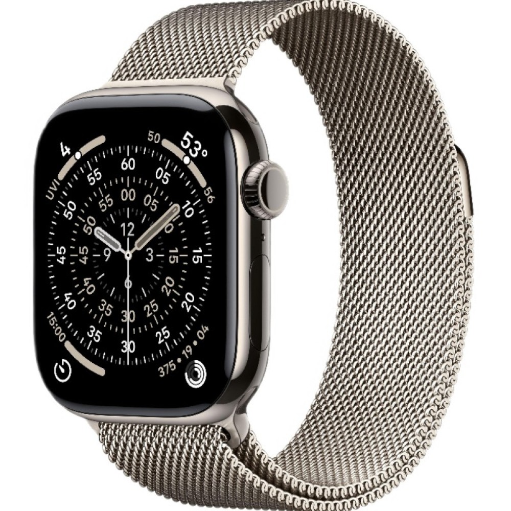Apple Watch Series 11 в корпусе из натурального титана — это воплощение роскоши, технологичности и функциональности. Эта модель, оснащенная элегантным миланским браслетом Milanese Loop, создана для тех, кто ценит не только передовые возможности смарт-часов, но и безупречный внешний вид, который подчеркивает статус и индивидуальность. С 42-миллиметровым корпусом и поддержкой GPS + Cellular, Series 11 станет вашим незаменимым спутником в повседневной жизни, на работе и в путешествиях. Премиальный дизайн и исключительный комфорт•  Корпус из натурального титана 42 мм: Титан — это материал премиум-класса, известный своей невероятной прочностью, легкостью и устойчивостью к царапинам и коррозии. Натуральный оттенок титана придает часам изысканный и утонченный вид, который гармонично сочетается как с деловым костюмом, так и с повседневной одеждой. Размер 42 мм идеально подходит для большинства запястий, обеспечивая комфортное ношение.•  Дисплей Always-On Retina: Яркий и четкий дисплей, который всегда активен, позволяет мгновенно считывать информацию без необходимости поднимать запястье. Защищен прочным сапфировым стеклом, которое обеспечивает превосходную устойчивость к царапинам, сохраняя безупречный внешний вид часов на долгие годы.•  Milanese Loop: Этот культовый браслет из нержавеющей стали, сплетенный из тысяч тонких металлических нитей, отличается невероятной гибкостью и комфортом. Он плавно облегает запястье, а магнитная застежка обеспечивает идеальную посадку. Milanese Loop — это символ элегантности и изысканности, который превращает ваши Apple Watch в стильный аксессуар. Полная автономность с GPS + Cellular•  GPS + Cellular (eSIM): Благодаря встроенному модулю сотовой связи (eSIM), Apple Watch Series 11 обеспечивают полную автономность. Вы можете совершать звонки, отправлять сообщения, стримить музыку и пользоваться интернетом прямо с часов, даже если iPhone остался дома. Это дает вам свободу и уверенность, где бы вы ни находились. Здоровье и благополучие на первом местеApple Watch Series 11 — это ваш персональный ассистент по здоровью, который всегда на связи, предоставляя ценные данные и предупреждая о потенциальных проблемах.•  ЭКГ и уведомления о нерегулярном ритме: Часы способны снимать электрокардиограмму, помогая выявить признаки мерцательной аритмии. Функция уведомлений о нерегулярном ритме предупредит вас о потенциальных проблемах с сердцем, позволяя своевременно обратиться к врачу.•  Измерение кислорода в крови (SpO2): Отслеживайте важный показатель общего самочувствия и дыхательной системы прямо с запястья, получая ценную информацию о своем здоровье.•  Мониторинг сна: Получайте подробную информацию о фазах сна (быстрый, глубокий, основной) и времени бодрствования, чтобы лучше понимать свои паттерны сна и улучшать его качество для более продуктивного дня.•  Отслеживание температуры тела: Новая функция, которая предоставляет ценные данные для отслеживания женского здоровья, циклов и общего состояния организма, помогая выявить изменения.•  Детектирование падений и аварий: Автоматически вызывает экстренные службы и отправляет сообщение вашим контактам в случае серьезного падения или автомобильной аварии, обеспечивая вашу безопасность в критических ситуациях. Фитнес и спорт: Ваш личный тренер и мотиватор•  Продвинутые тренировочные режимы: Отслеживайте десятки видов трен