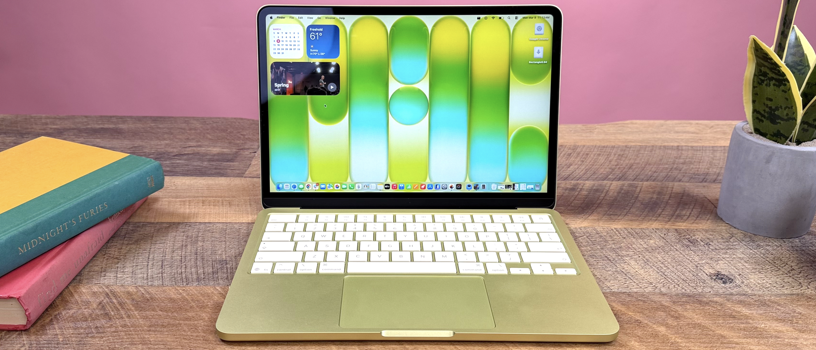 Цветовая гамма представлена в четырех вариантах: классический серебристый, космический серый, а также два новых оттенка — глубокий синий и приглушенный зеленый, которые ранее были доступны только для iPad Air. Это решение подчеркивает молодежную направленность устройства. Габариты ноутбука занимают промежуточное положение: он немного толще MacBook Air 13 дюймов, но тоньше 14-дюймового MacBook Pro. Вес устройства составляет около 1.4 кг, что делает его удобным для ежедневной транспортировки в рюкзаке.